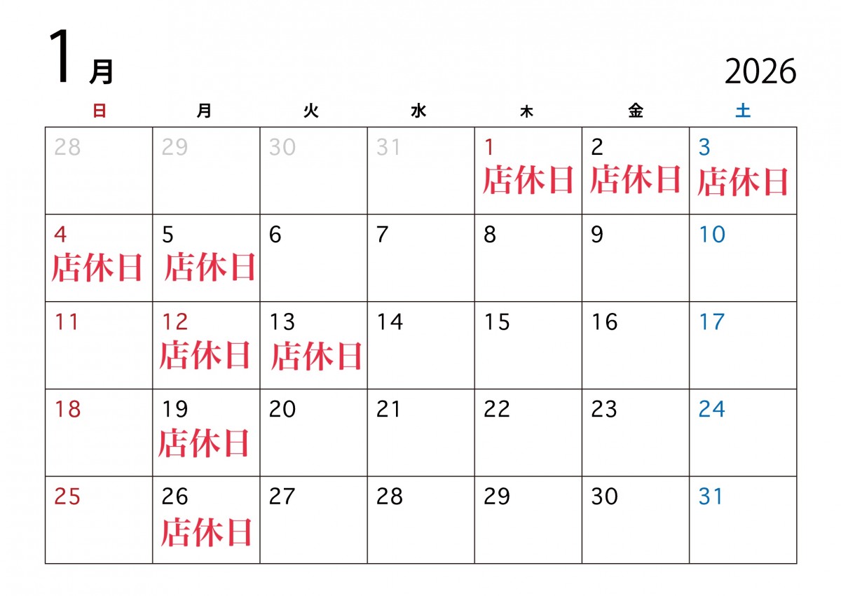 1月の店休日はこちらです✨
